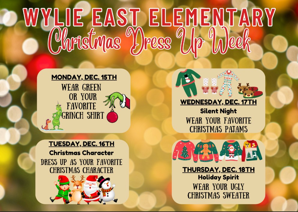 - December 15-18: Christmas Spirit Dress Up Days (See Below!)